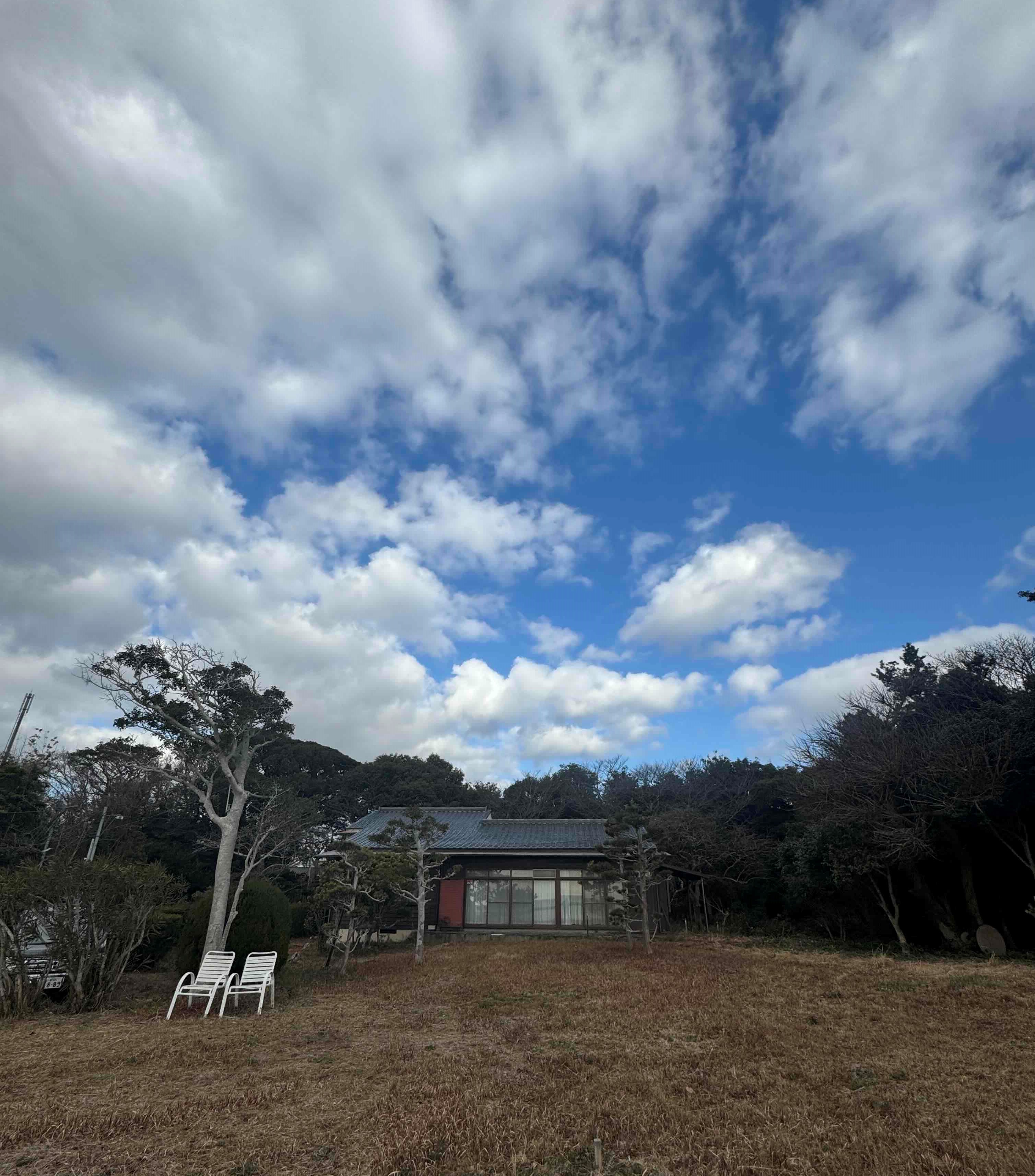 1250坪の海辺の古民家スタジオ。目の前の海岸でプライベートビーチのような静寂と春の桜を満喫。飛行機の離発着とJRローカル線が織りなす唯一無二の景観。
