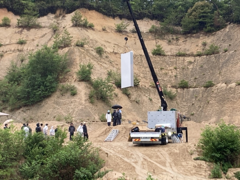 5月22日(木)、岡山県で金属加工業を営まれている株式会社クレスコさんのCM撮影を行いました。現場に運び込まれた物体、“未知のMono”は、クレスコさんが自社で製作されたものです。 撮影は、明け方から夜遅くまで続き、ダイナミックで幻想的なシーンとなりました。